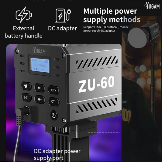 Yugam ZU60 LED fill light handheld COB light dual color 60w+ Dual Battery Handle