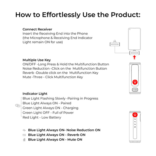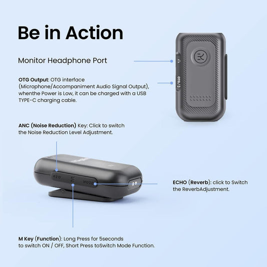 Digitek® (DWM-112) 2-in-1 Wireless Microphone System, 50M Range, Noise Reduction, 7Hrs Run Time, 2.4G, Type C to Lightning, for Android / iOS, Seamless Audio Recording, Vlogging, YouTube & More