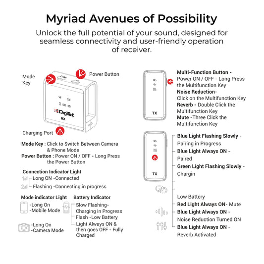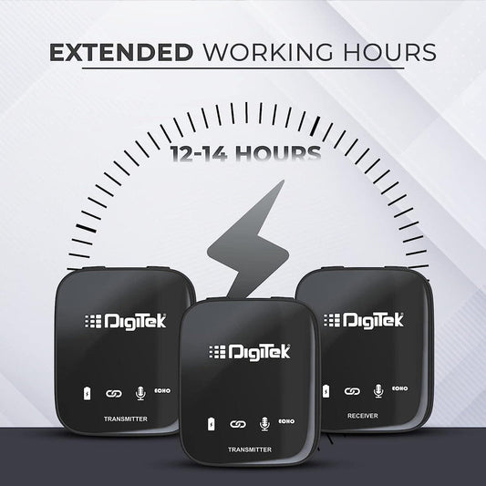 Digitek® (DWM 101) Wireless Microphone System with ANC Noise Reduction, 360° Sound Capture, 100M Range, Upto 12 Hrs Working Time, for DSLR Camera, Android & iOS Smartphones, Seamless Audio Recording