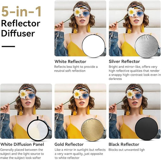 YUGAM 42" 110cm 5-in-1 Foldable Circular Light Reflector Set