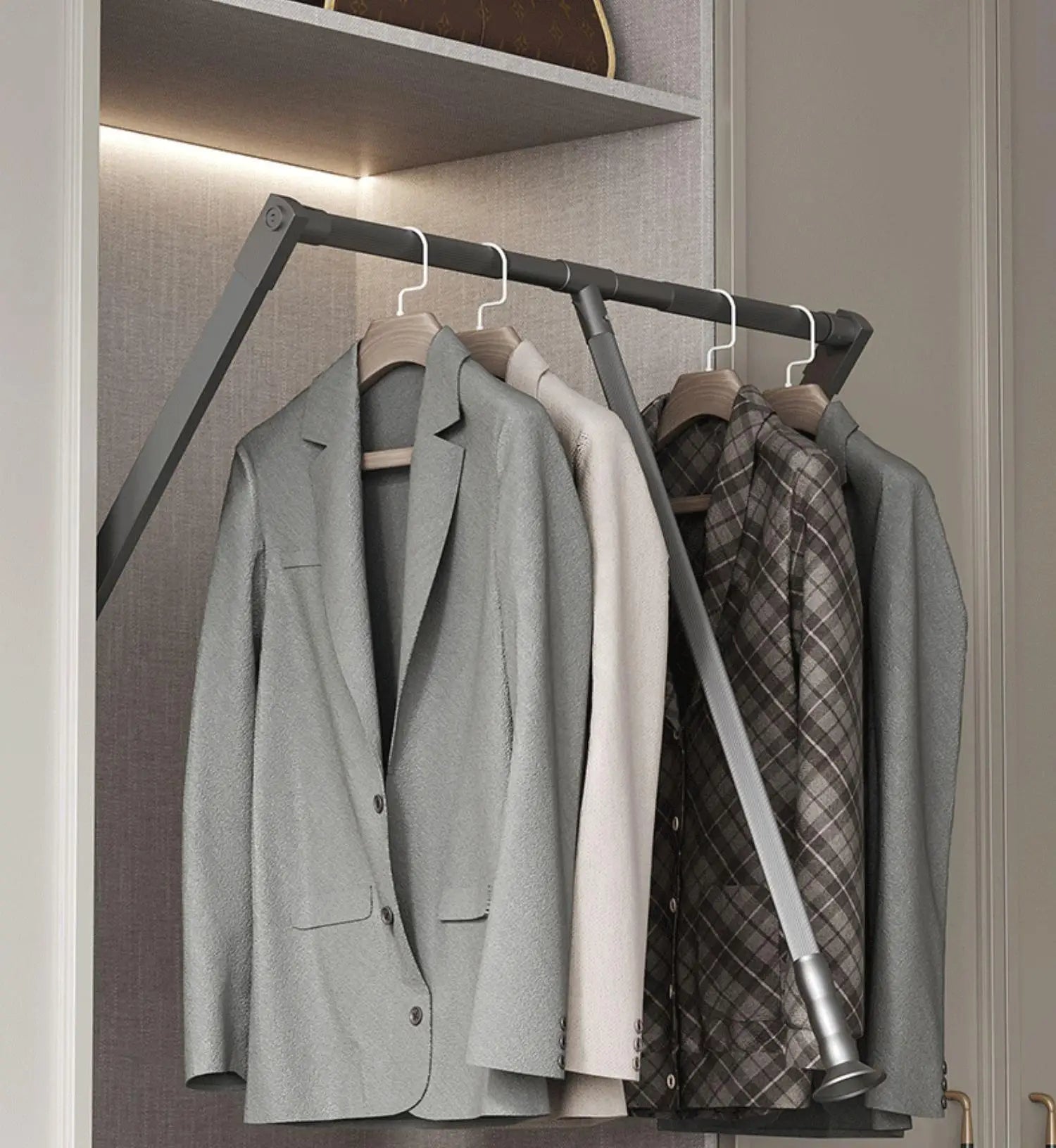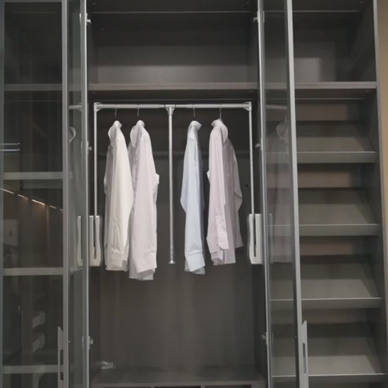 Perfect for wardrobe organization and efficient use of closet space. The hydraulic system ensures smooth lowering and lifting of clothes without noise.