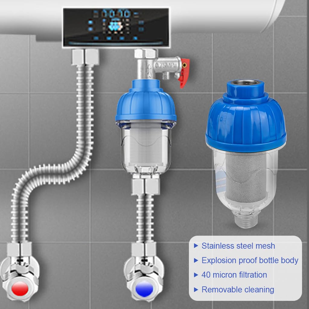 Household Water Heater Inlet Filter with 316 Stainless Steel Mesh | 40 Micron Fine Filter | 2.2 cm Inner Diameter | Anti-Rust Pre-Filter for Water Heater, Washing Machine & Under Sink